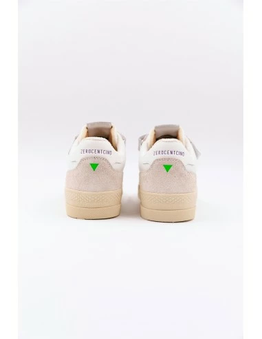 Ce modèle présente une tige en cuir blanc équipée d’un laçage purple et d’un scratch sur le coup de pied.
