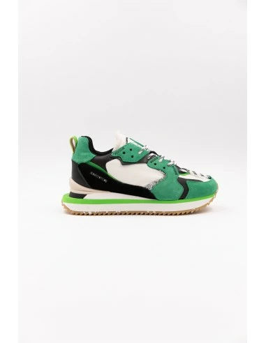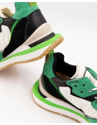 Sa tige en suède et toile propose un mix de vert et blanc ainsi qu’un lacet montage qui lui procure un esprit outdoor.