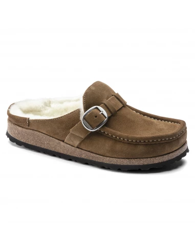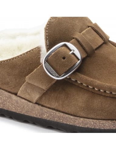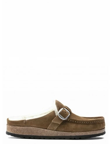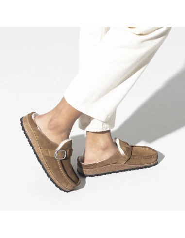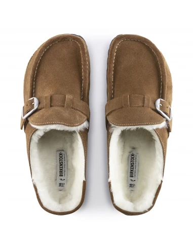 Ce sabot couleur chestnut présente une tige en daim avec un intérieur de pied entièrement fourré avec un mouton de très belle qualité.