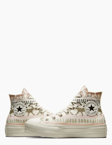 Avec ces motifs d’animaux et son mélange de couleur, la nouvelle converse montante et compensée vous fera voyager.