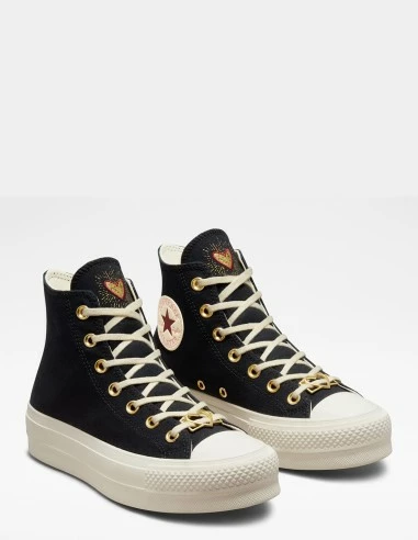 Parsemée de détails dorées, cette paire de Converse Chuck à plateforme fait passer votre style au niveau supérieur.