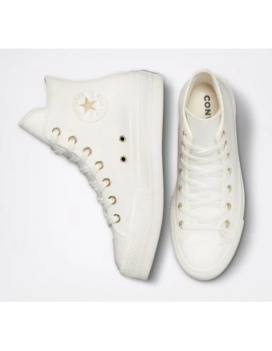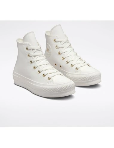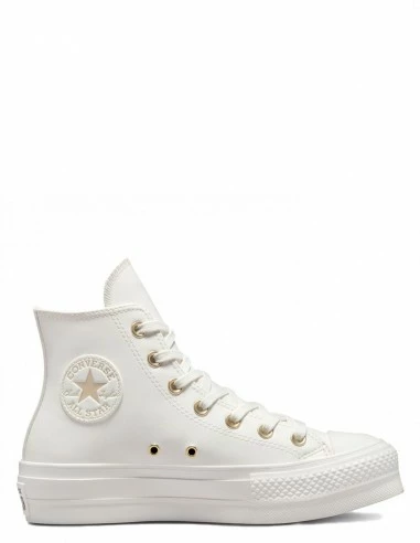 Découvrez la lift hi Vintage en cuir blanc et œillets dorés.