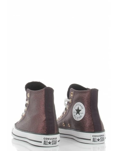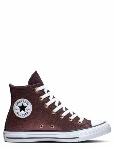 La chuck taylor cherry propose une tige rouge foncé à paillettes et des œillets dorés.