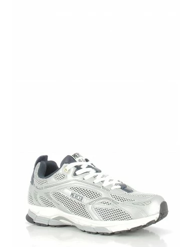 Cette sneakers The Re-Run ultra tendance propose une semelle running, une tige argentée et une languette en cuir bleue marine.