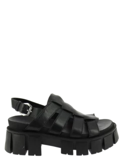 Sandale Mjus en cuir noir avec grosse semelle crantée.