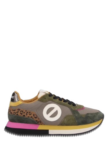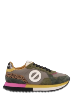 Vous trouverez le thème léopard au niveau du contrefort, une empeigne kaki ainsi qu’une touche de fuchsia pour relevé le tout.