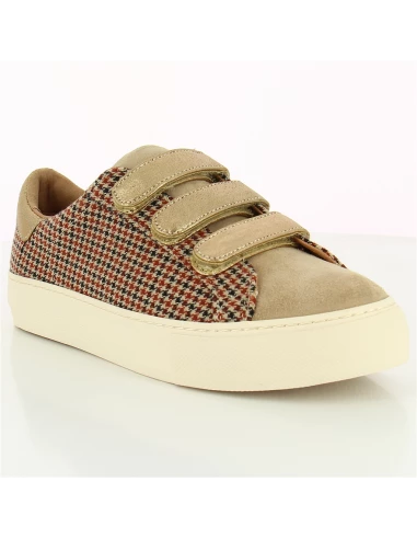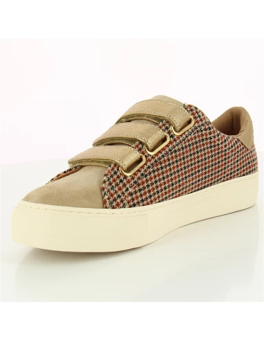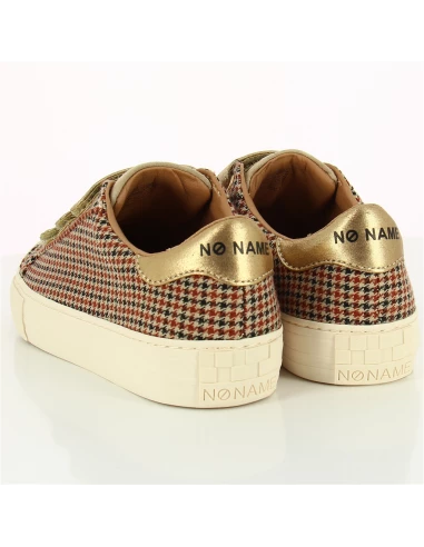 L’immanquable ARCADE STRAPS impose son style avec sa toile à motifs pied de poule. Une basket féminine qui ne manque pas d’audace avec ses trois straps et ses détails dorés qui en font un véritable must have de NO NAME.