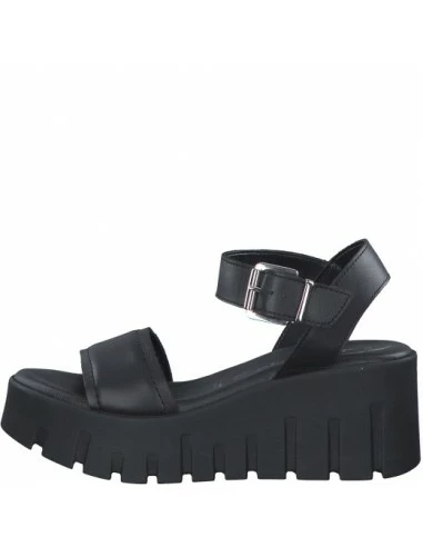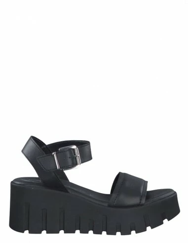 Découvrez cette sandale compensée de chez Tamaris.