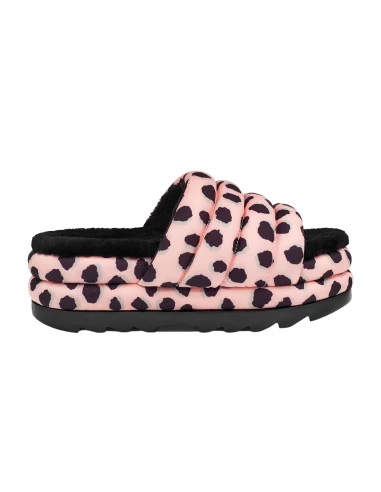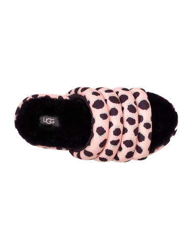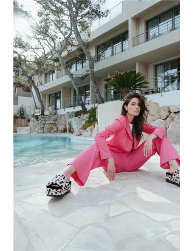 L’intérieur du pied est réalisé en peau de mouton et sa anse propose un motif guépard pink/black.