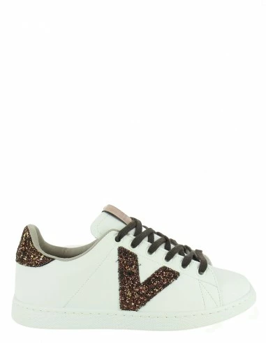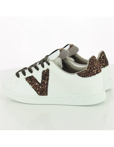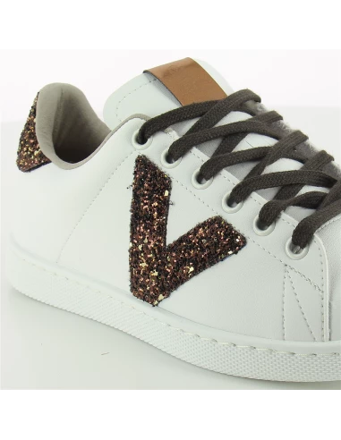 Les classiques tennis Victoria blanc avec le logo Victoria découpé sur le côté en glitter.